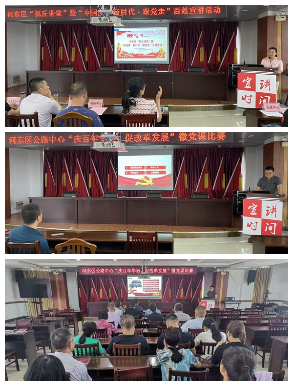 5月27日下午,河东区公路中心在党员活动室成功举办中共河东区第六党建网格党委“祝丘讲堂”暨“中国梦•新时代•跟党走”百姓宣讲和“庆百年华诞、促改革发展”河东中心微党课比赛活动。