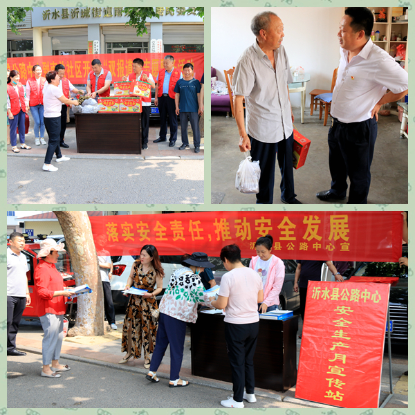 6月11日上午,沂水县公路中心组织党员,开展了以“粽香传党温 ”+“安全宣传进社区”为主题的为群众办实事“双报到”实践活动。