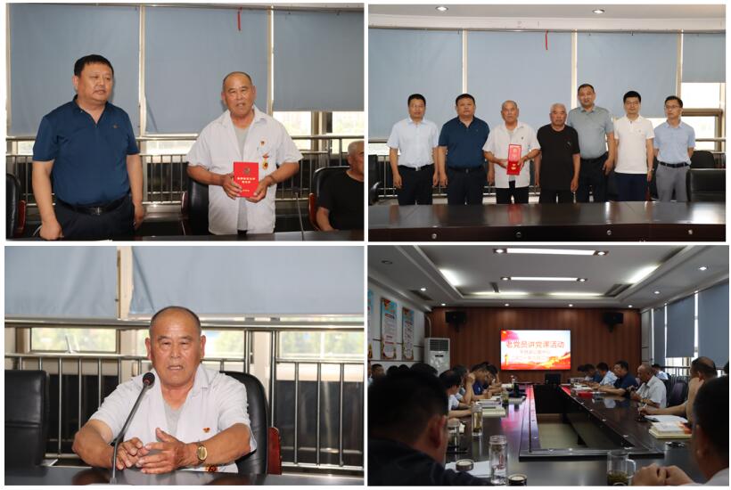 6月22日,平邑县公路中心举办“光荣在党50年”纪念章颁发仪式,为老党员谢玉山同志颁发纪念章,并邀请谢玉山同志为全体党员上党课。
