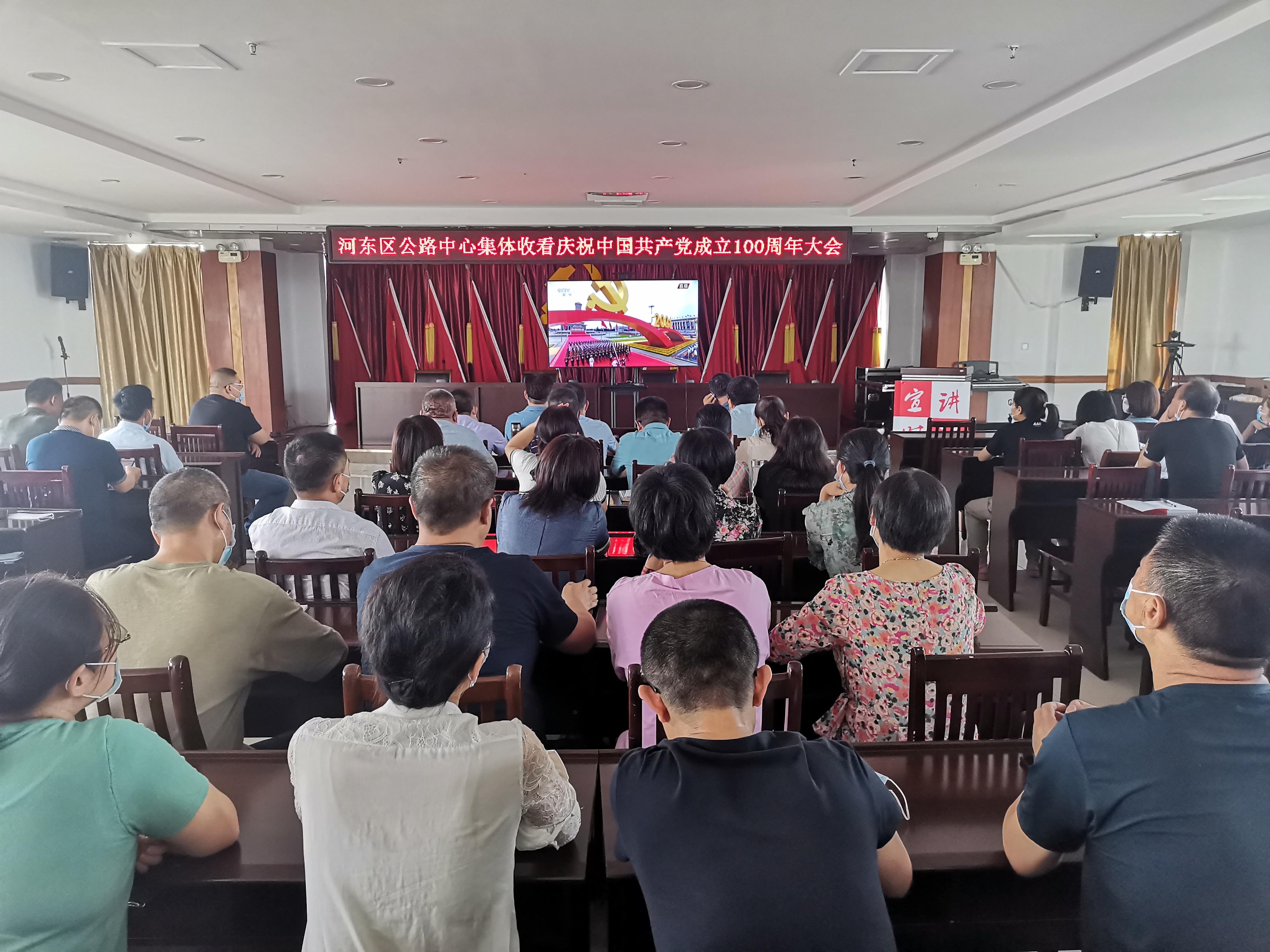 7月1日上午8时,河东区公路中心在九楼会议室集体收看庆祝中国共产党成立100周年大会。
