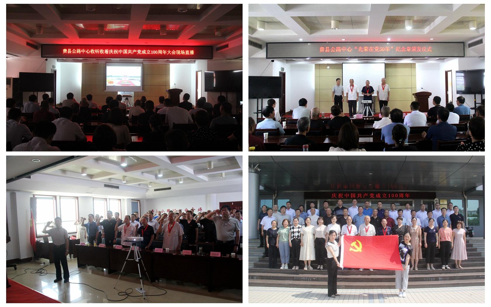 首先观看了庆祝中国共产党成立100周年大会实况,聆听了习近平总书记重要讲话。然后隆重举行了“光荣在党50年”纪念章颁发仪式,颁发仪式设置了合唱国歌、为三名老党员颁发纪念章、重温入党誓词三个环节。主要负责人严庆华同志主持,对老党员在推动公路事业发展中做出的突出贡献给予了高度评价,号召全体党员干部向老党员学习,以优异成绩庆祝建党100周年,仪式现场气氛热烈而庄重。最后,全体党员在“奋斗百年路、启航新征程”条幅上逐一签名,并拍摄了一张“全家福”。党员们纷纷表示,听了习近平总书记的讲话心潮澎湃,豪情满怀,进一步坚定了自己的初心使命,参加了“光荣在党50年”纪念章颁发仪式,更加坚定了奉献公路事业的信念和决心。