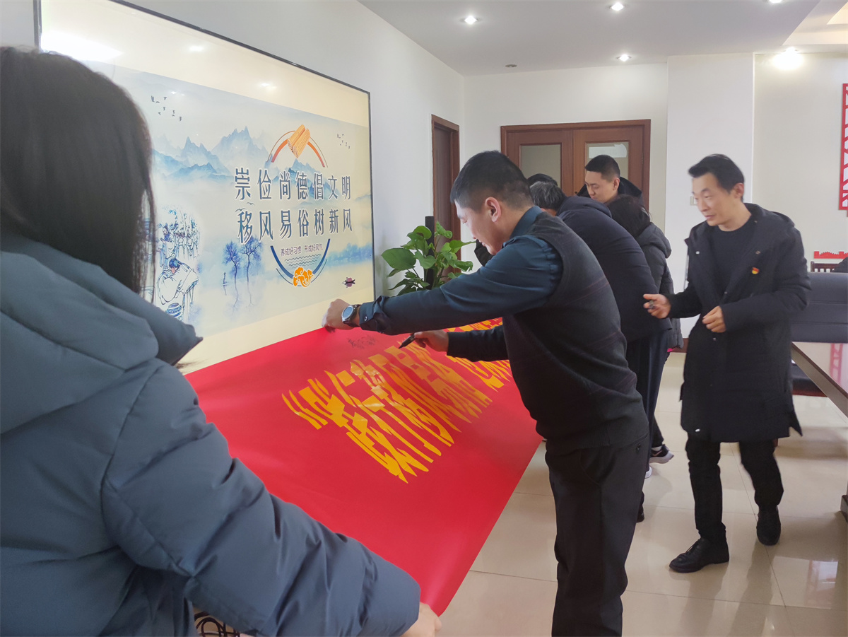 随后组织干部职工集体观看移风易俗宣传片,并集中学习“践行移风易俗 过欢乐文明春节”倡议书。最后,共同在“践行移风易俗 过欢乐文明春节”条幅上承诺签名。