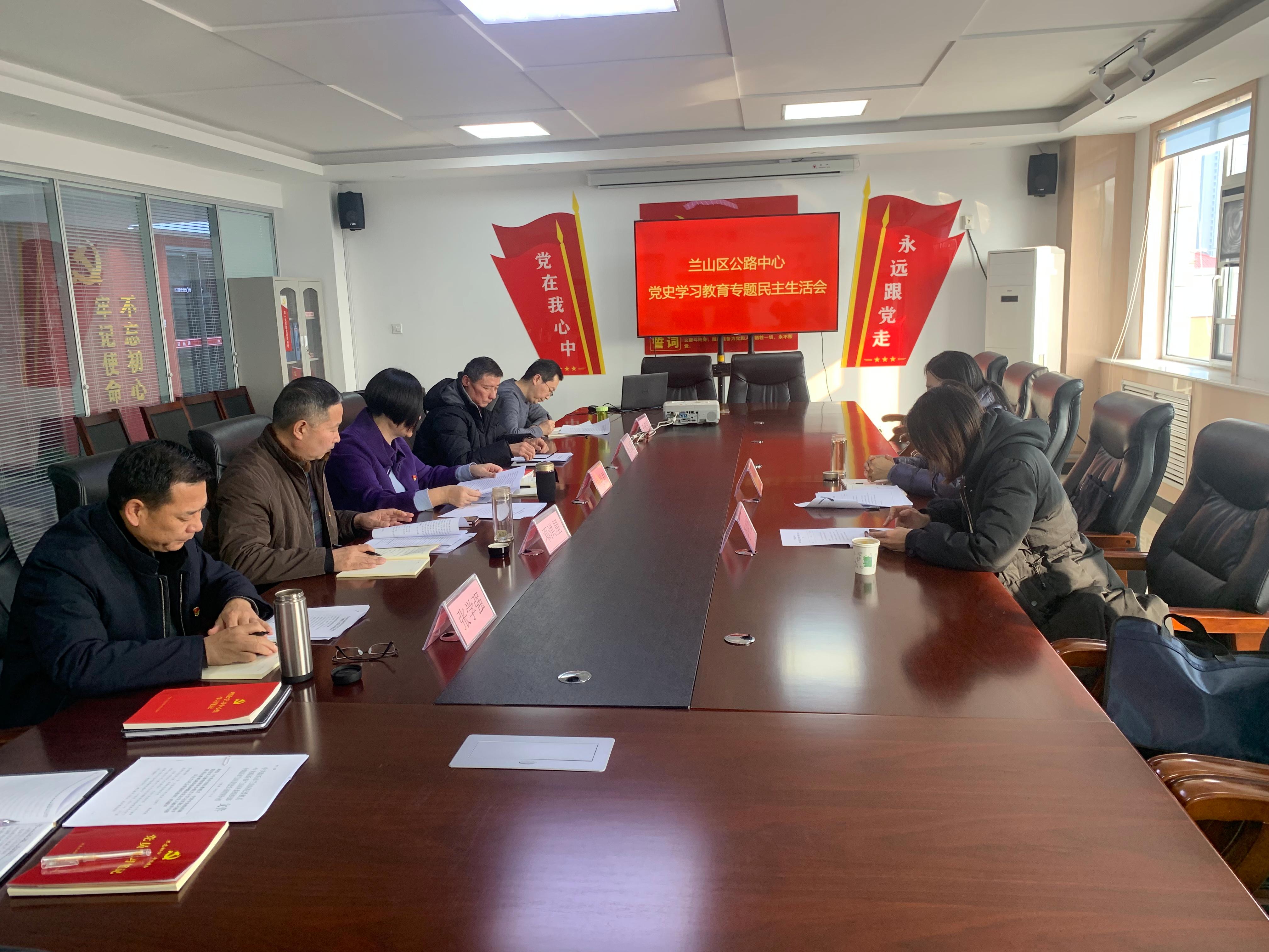 1月25日下午,兰山区公路中心召开党史学习教育专题民主生活会。党总支书记刘艳君同志主持会议并作总结讲话,党史学习教育区直第一巡回指导组副组长张华芳同志一行到会指导,中心领导班子成员参加会议。