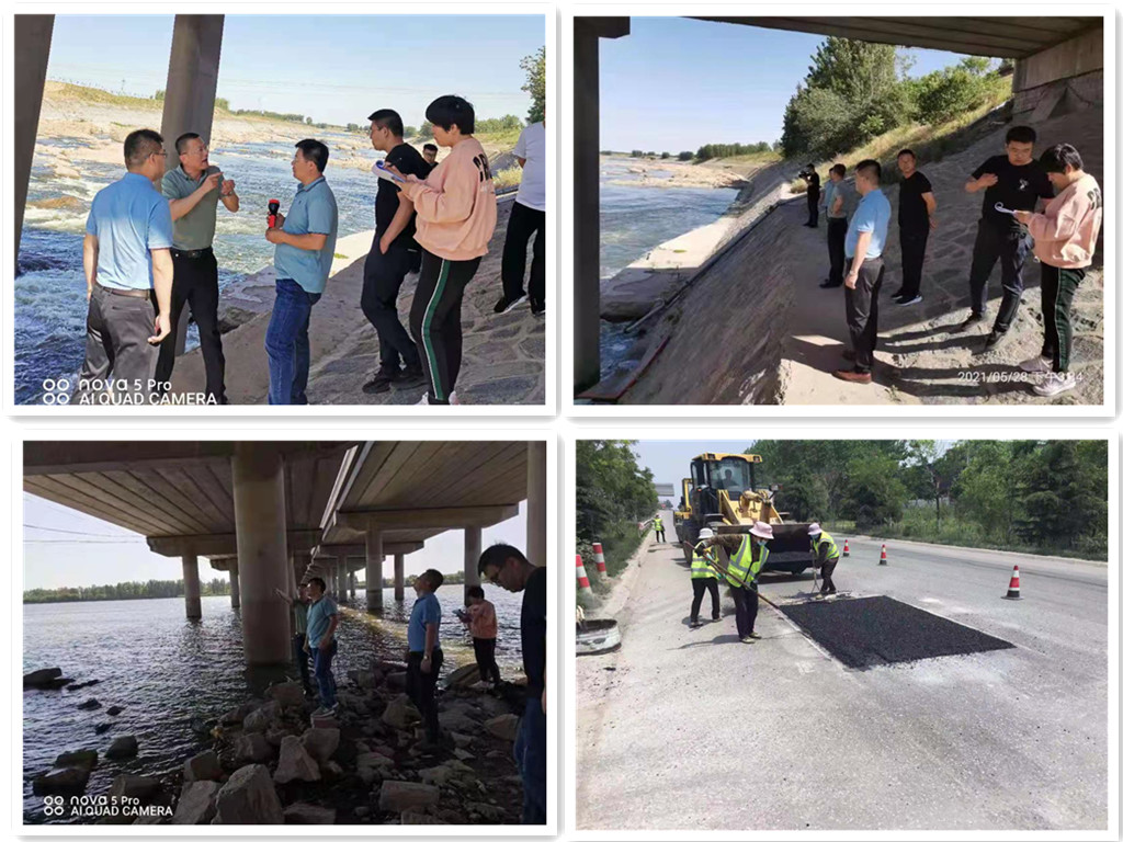 检查组人员对G233国道及S225省道路基、路面、桥涵构造物、沿线设施进行一次拉网式排查,重点对桥梁墩台基础有无冲刷、不均匀沉降,桥梁主要承重构件有无变形、开裂,锥坡是否冲刷、勾缝脱落、伸缩缝、泄水孔有无堵塞等问题进行了一次全面排查梳理,对检查出的安全隐患建立台帐,提出切实可行的处置方案,及时整治,确保桥梁安全度汛。同时安排养护人员对路面病害进行了一次汛前集中处置,尤其是因重载车辆引起损毁严重的S225省道措大路口、韩村大街等路段路面病害进行了基层挖补处置,确保公路各项技术状况良好,确保汛期公路安全畅通。