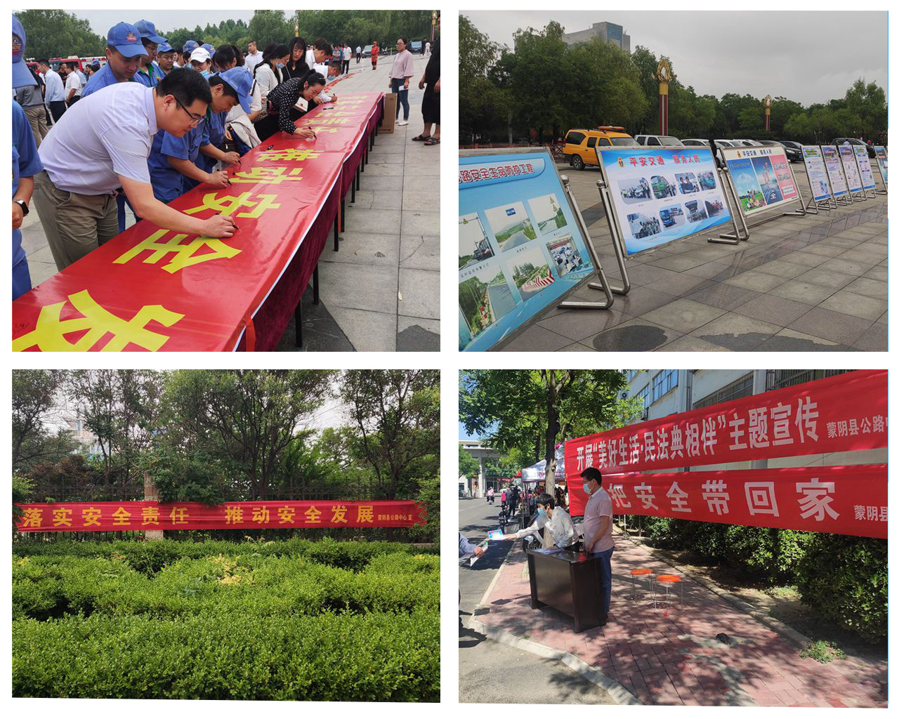 6月4日,蒙阴县公路中心参加了蒙阴县安委会举办的第二十个“安全生产月”活动启动仪式。县安委会以“落实安全责任,推动安全发展”为主题举办了现场消防灭火、应急救援、医护抢救等演练;并组织万人签名承诺;宣传展览等活动。我中心在仪式上设置了展板,机关办公区、公路站等重点场所悬挂安全生产横幅、标语,并根据“五进”方案走进叠翠小区进行安全宣传,为“安全生产月”活动营造了良好的宣传氛围。