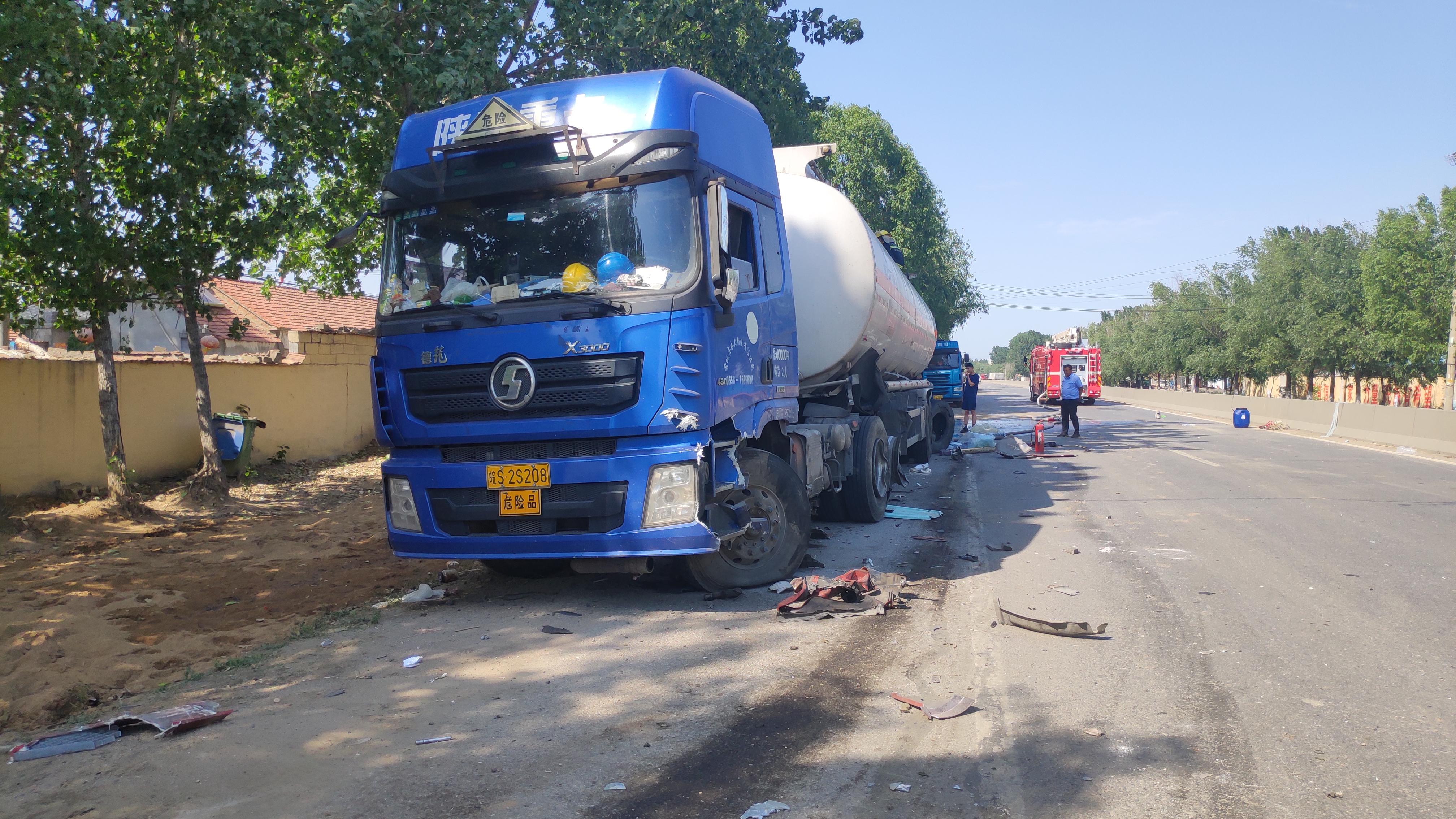 6月8日上午10时许,233国道1173K+820下行处发生两辆油罐车追尾事故,前车燃油泄漏,该处车流量较大,来往群众较多,随时可能发生二次事故,现场情况十分危险紧急。