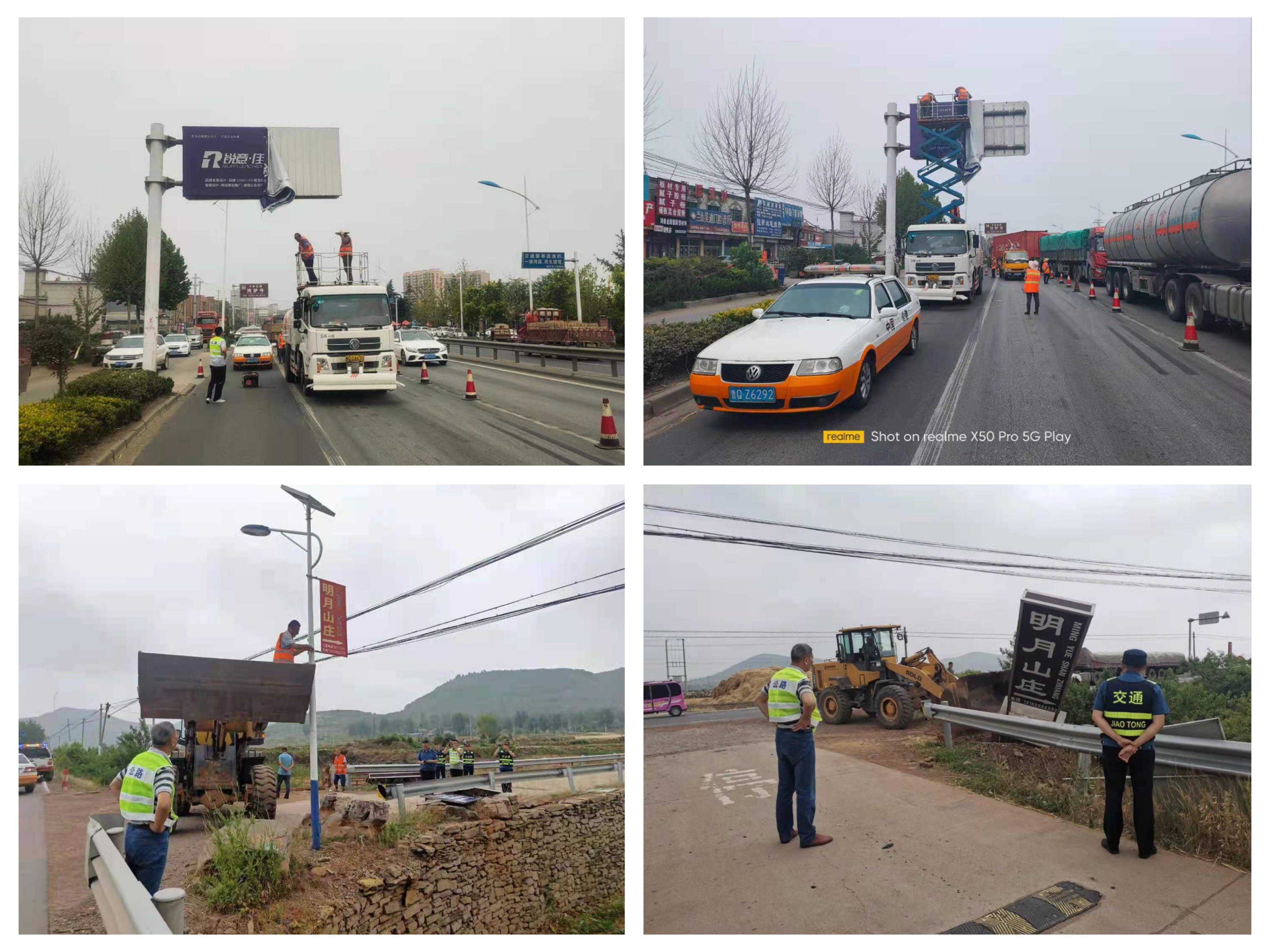 为全面做好当前安全生产工作,营造更加安全畅通有序的通行环境,6月9日至10日,费县公路中心联合县交通执法大队开展专项整治行动,对公路两侧违规广告牌匾集中清理拆除。