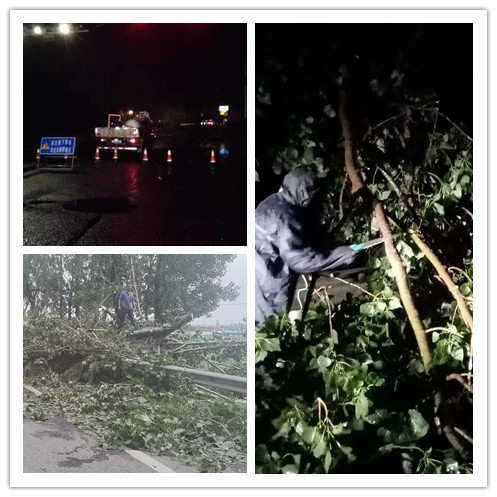 坚守岗位,及时处置突发情况。暴雨期间,该中心组织防汛队伍24小时坚守工作岗位,随时准备道路抢险保通。7月14日,应急指挥平台发现左山铁路桥底水位异常,防汛人员马上就位,封堵交通,设置警示牌,并立即开展排水保畅工作;G518路侧大杨树倒伏,横亘在道路当中,影响通行且极易造成交通事故,防汛人员冒雨第一时间赶赴现场清理倒落的杨树,及时排除了安全隐患。