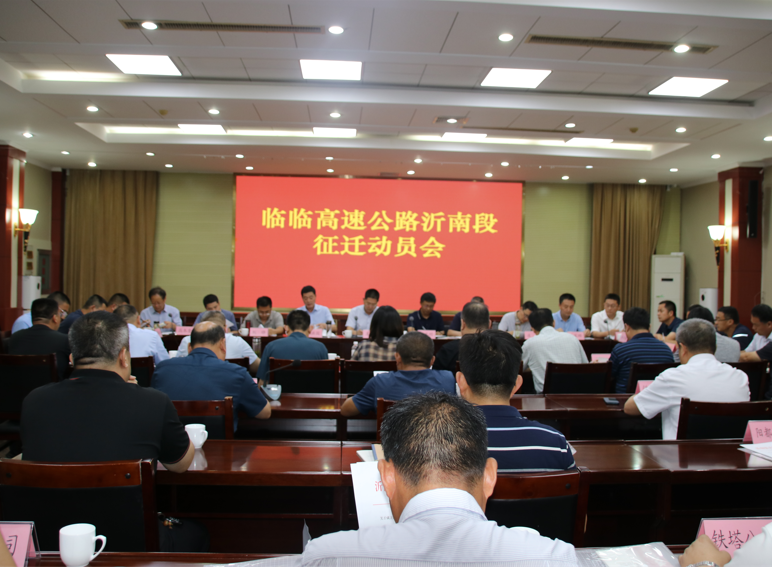 7月16日,沂南县召开临临高速公路征地拆迁动员会议,县领导王立忠、朱洪国,山东高速淄临公司总经理郭光明,市交通基础设施重点工程推进专班,县临临高速指挥部,勘界单位和评估单位项目负责人,沿线乡镇政府主要负责人和县直相关单位分管负责人等40余人参加会议。