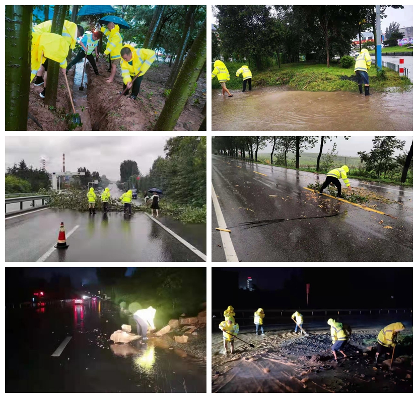郯城县公路中心为保障全县国省道干线公路安全畅通,领导班子分组带队,不分昼夜,现场指挥;干部职工坚守一线,沐风栉雨,昼夜奋战,全力保障郯城公路安全畅通。