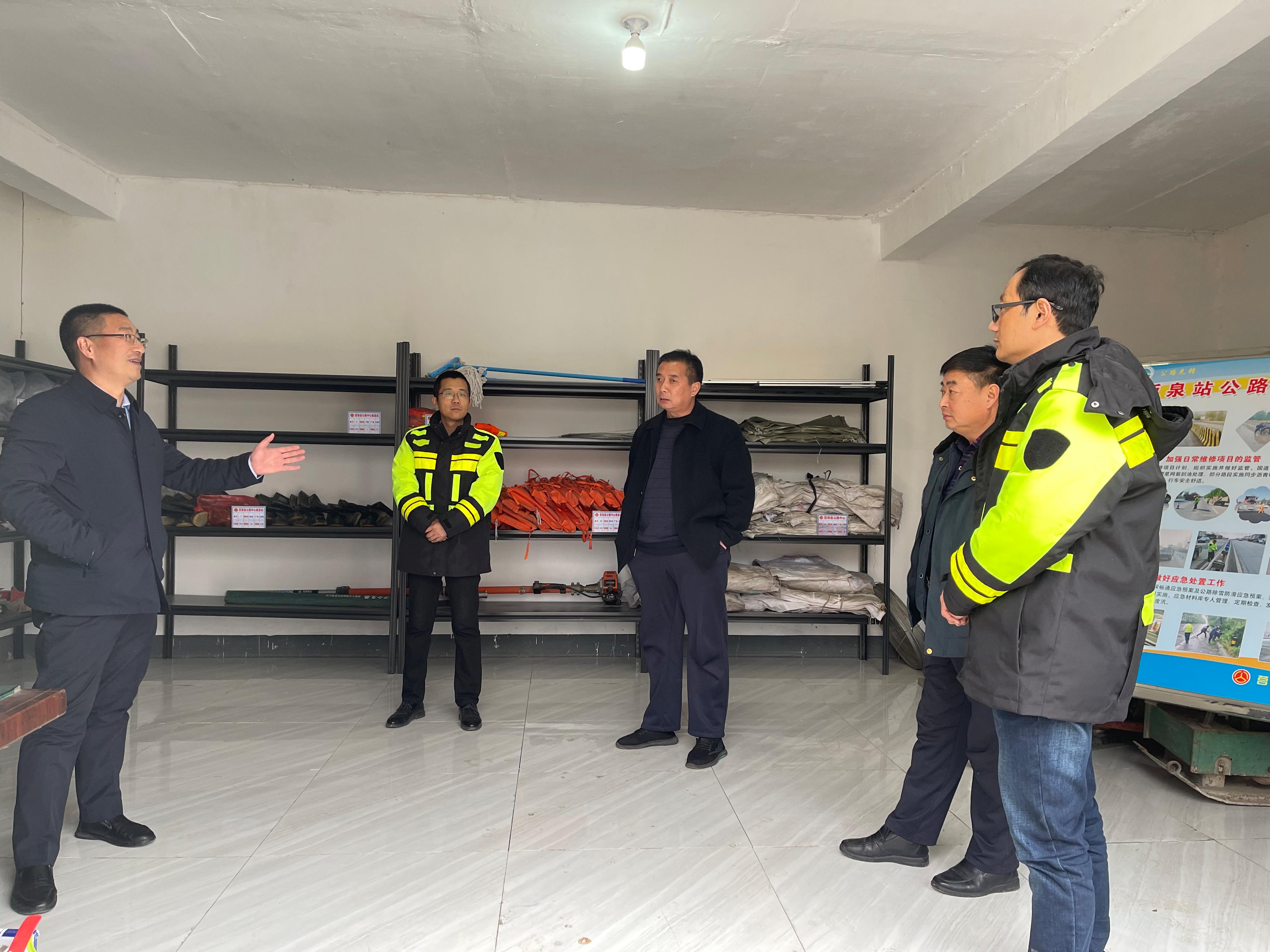该次隐患排查以路域高危边坡、事故易发地段是否存在隐患、防冻防滑应急物资是否足额配备、各路段的安全警示标志是否有缺失、桥下乱堆乱放等现象为重点。检查中史主任强调,要加强“四类桥”监管,时刻关注桥下动态,是否有易燃物堆积。节日期间,应急处置组的人员要以箭在弦上之态,预备做好雨雪天气的应急处置,以闭环式管理模式开展春节、春运期间各项安全工作。公路区域巡查完毕,检查组对各公路站的值班安排和安全情况进行了查看,再次强调,节假日期间各站点的值班人员应恪尽职守,要做到路在心上、身在路上,加强公路巡查,发现隐患立即处置。同时,加强疫情防控、尽量减少公共聚餐和不必要的外出,确保春运及春节期间不发生任何安全事故。