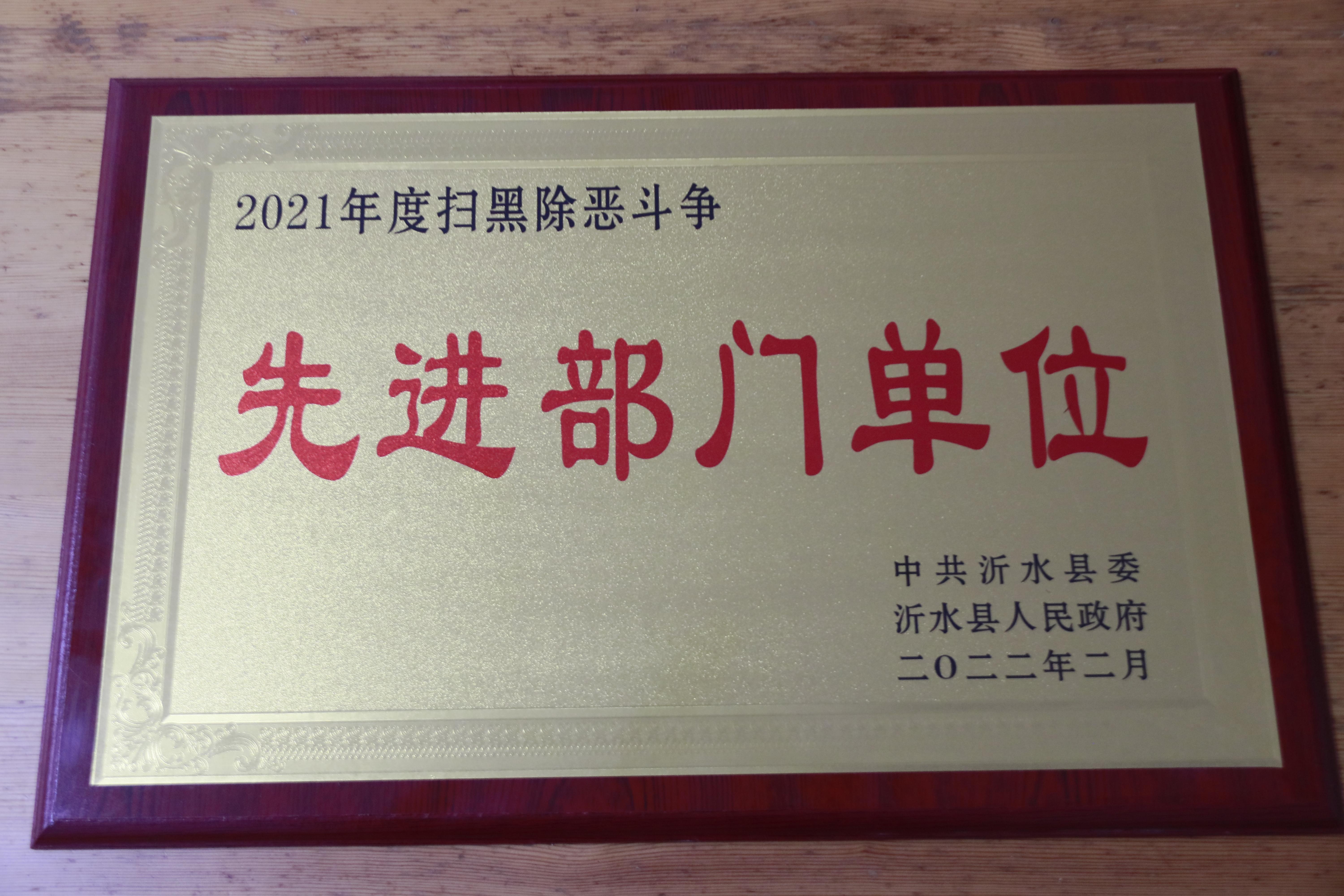 近日,沂水县公路中心被中共沂水县委、沂水县人民政府授予“2021年度扫黑除恶斗争先进部门单位”荣誉称号。