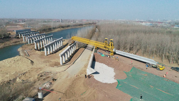 2月28日上午10时,G205郯城绕城段改建工程白马河大桥箱梁架设正式开始。